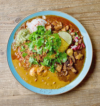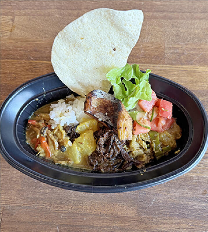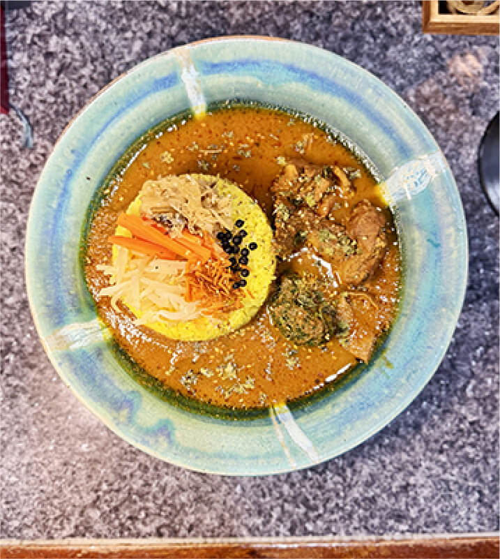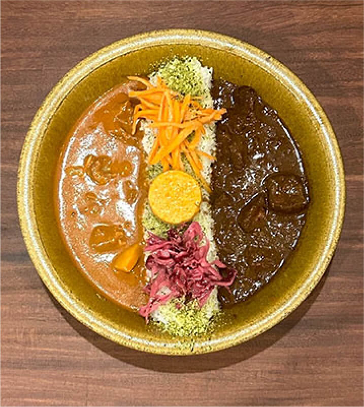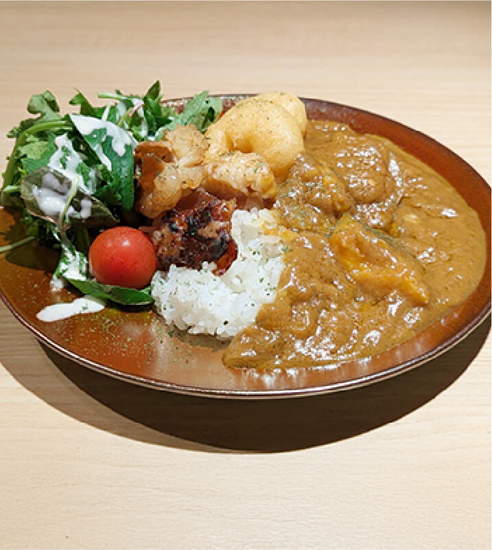 ほのかな桃のあま~い香りと深いコク、あとからくる様々なスパイスの風味が特徴の癖になるカレーです!お店によってレシピが違うのも個性的。